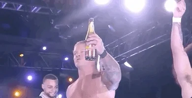 Daniel não perde tempo, ele imediatamente coloca a cabeça de Brownsky entre suas pernas, o erguendo na sequência e joga-lo contra o corner, aplicando um forte Buckle Bomb!