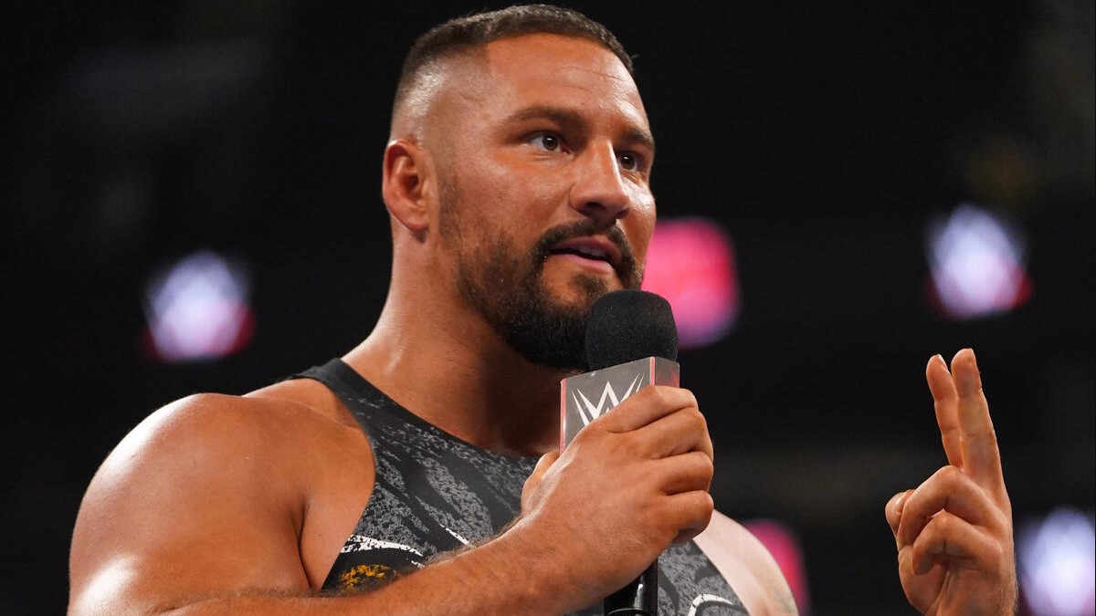 O campeão imediatamente atira The Nnoitra contra o outro corner, acertando-o com um Clothesline na sequência.